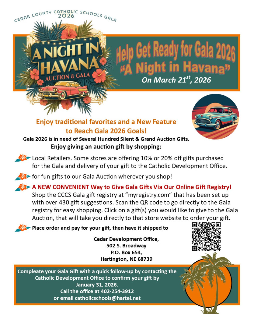 Direct Link to GALA Gift Registry: https://www.myregistry.com/wishlist/cedar-county-catholic-schools-gala-/5118081